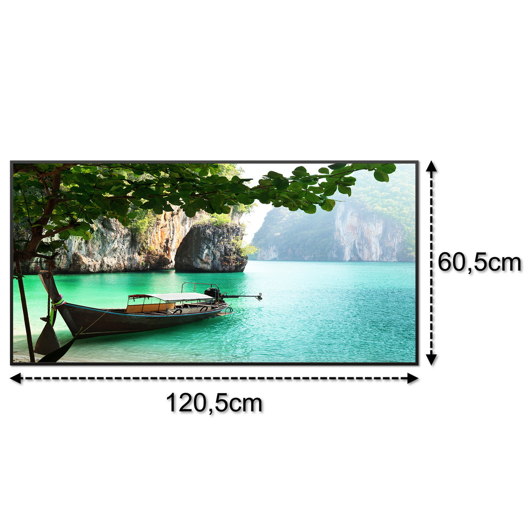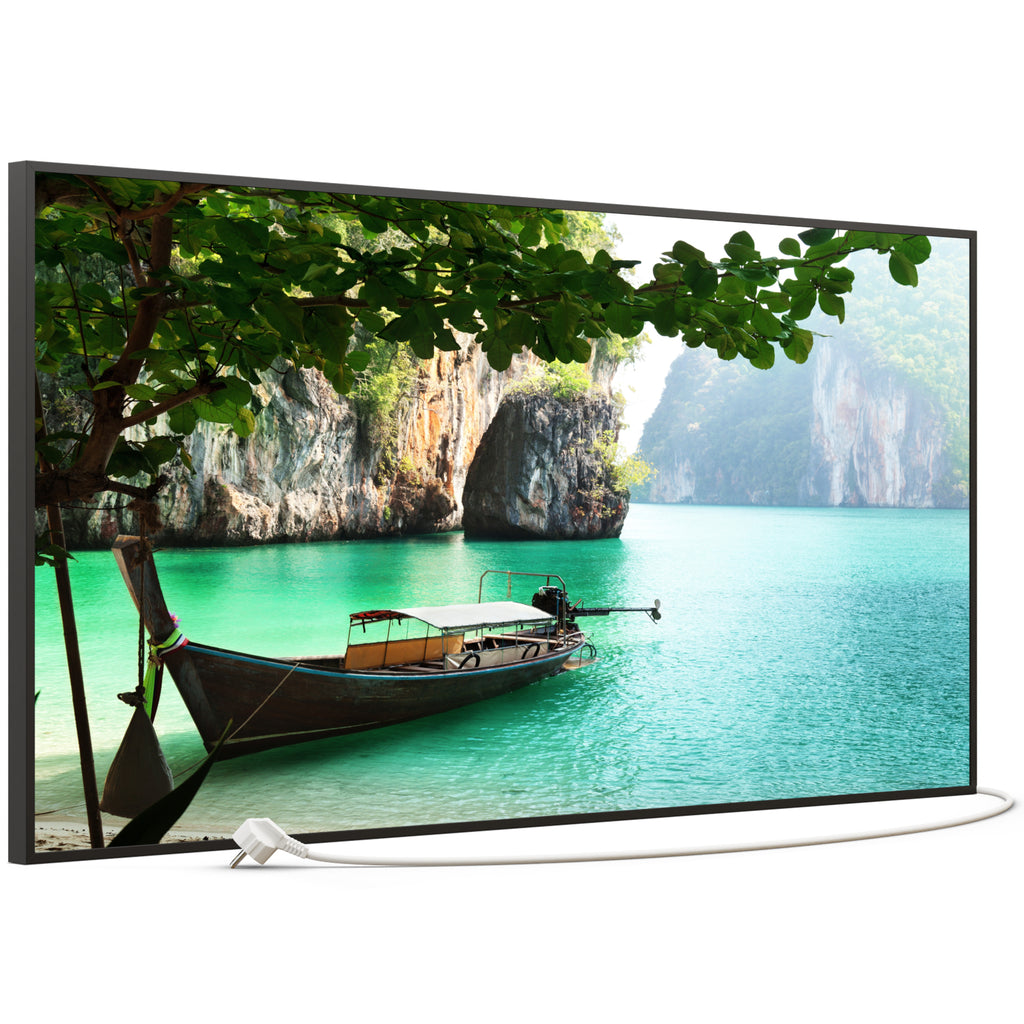 Die flache Bauweise der Bild Infrarotheizung macht sie zu einer platzsparenden Lösung, die gleichzeitig als dekoratives Element dient. Perfekt für Wohnzimmer, Schlafzimmer, Büros oder sogar Flure.