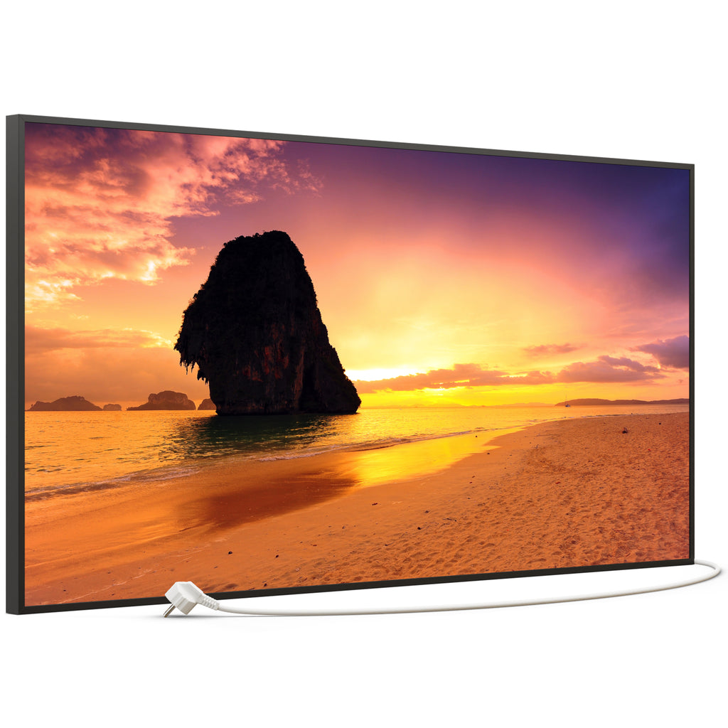 Die flache Bauweise der Bild Infrarotheizung macht sie zu einer platzsparenden Lösung, die gleichzeitig als dekoratives Element dient. Perfekt für Wohnzimmer, Schlafzimmer, Büros oder sogar Flure.