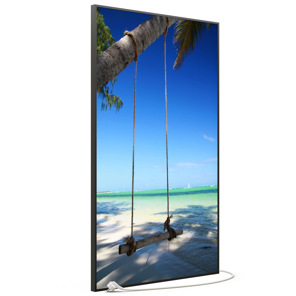 Die 360°-Halterung ermöglicht es, die Bild Infrarotheizung je nach Motiv und Raumgestaltung im Quer- oder Hochformat aufzuhängen. Zudem ist die Montage an Schrägen möglich, was eine besonders flexible und platzsparende Installation ermöglicht.