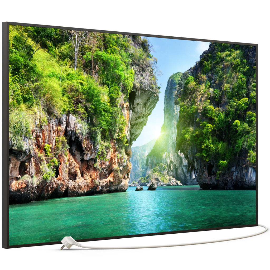 Die flache Bauweise der Bild Infrarotheizung macht sie zu einer platzsparenden Lösung, die gleichzeitig als dekoratives Element dient. Perfekt für Wohnzimmer, Schlafzimmer, Büros oder sogar Flure.