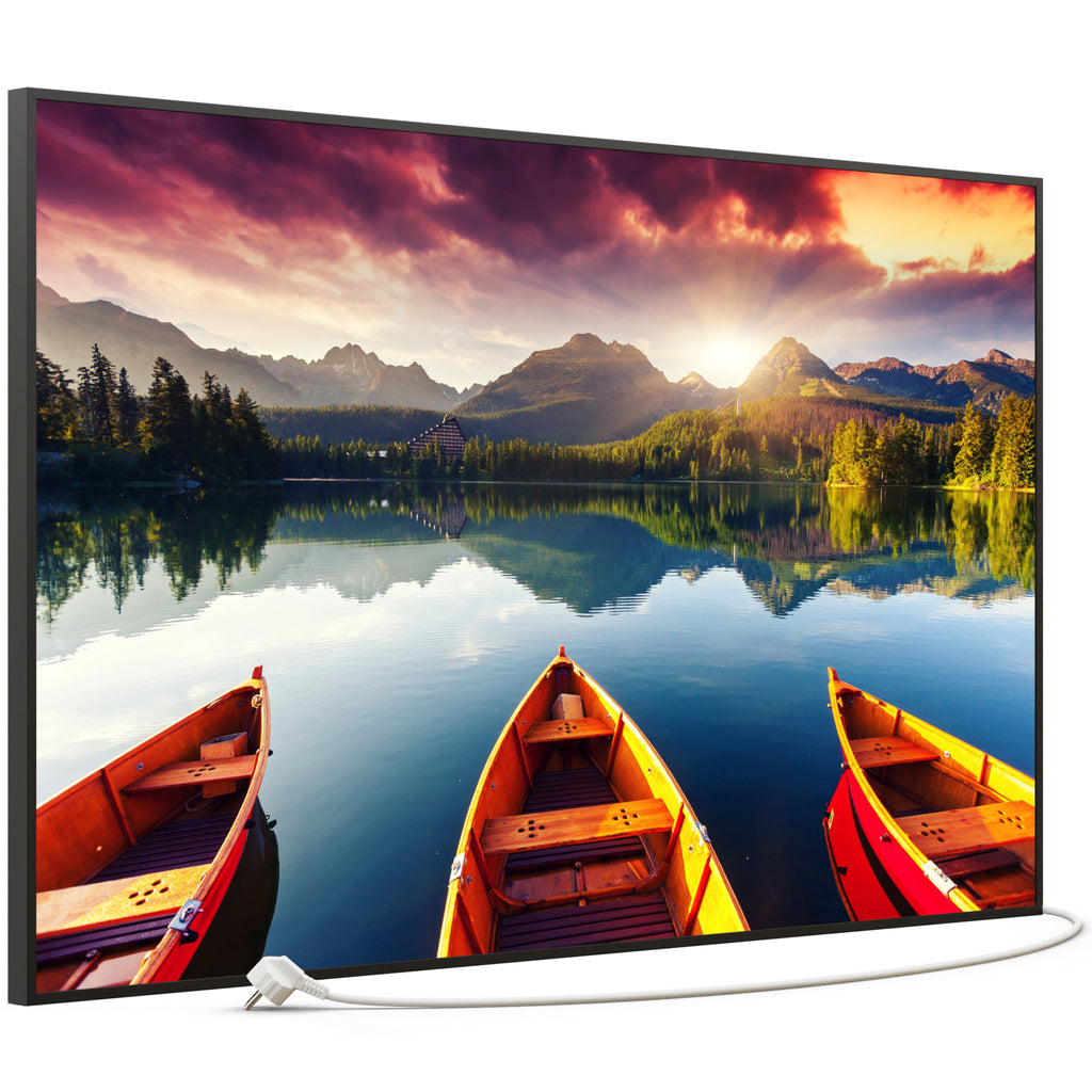 Die flache Bauweise der Bild Infrarotheizung macht sie zu einer platzsparenden Lösung, die gleichzeitig als dekoratives Element dient. Perfekt für Wohnzimmer, Schlafzimmer, Büros oder sogar Flure.