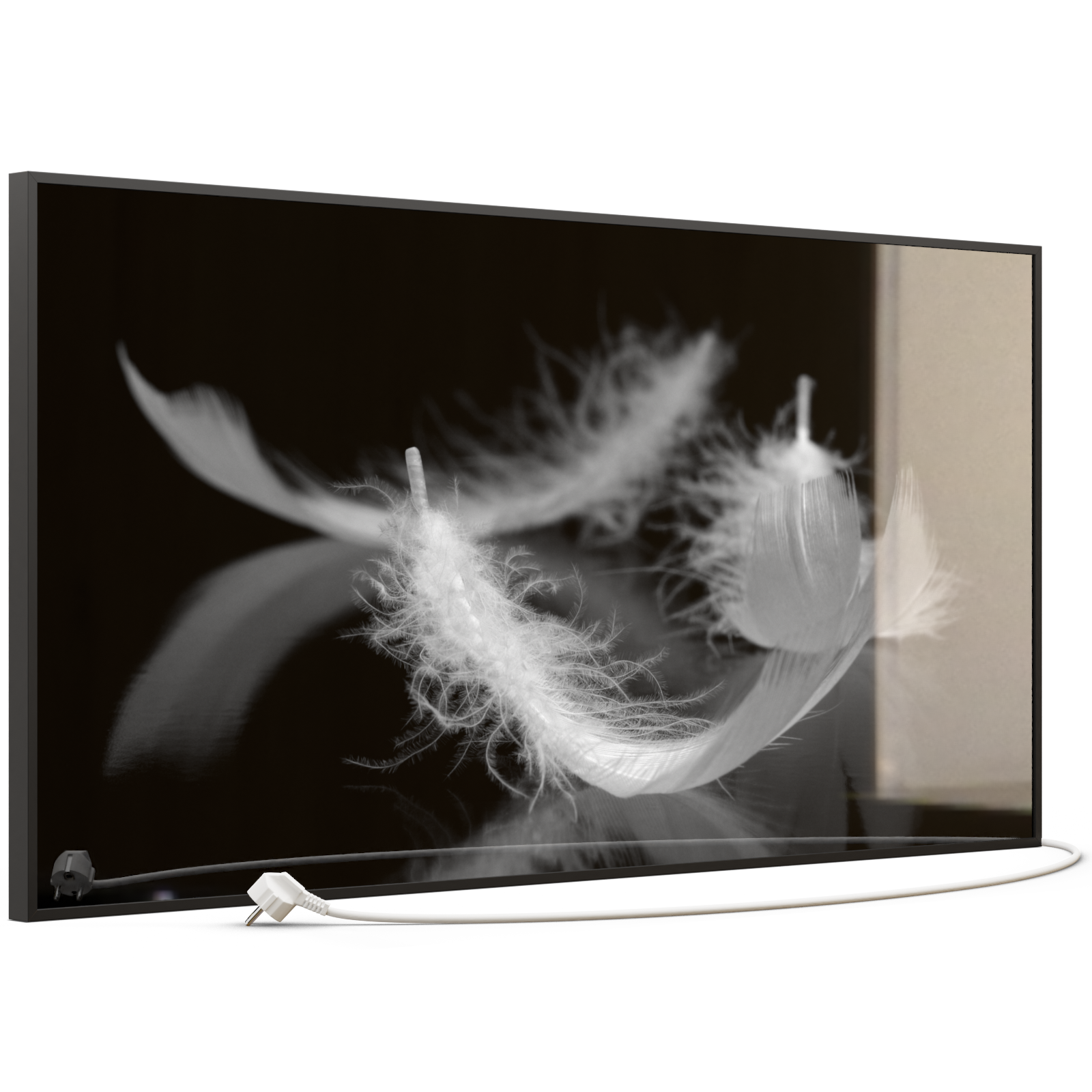 Glas Infrarotheizung 350-1200W Motiv 018 Federn Schwarz Weiß