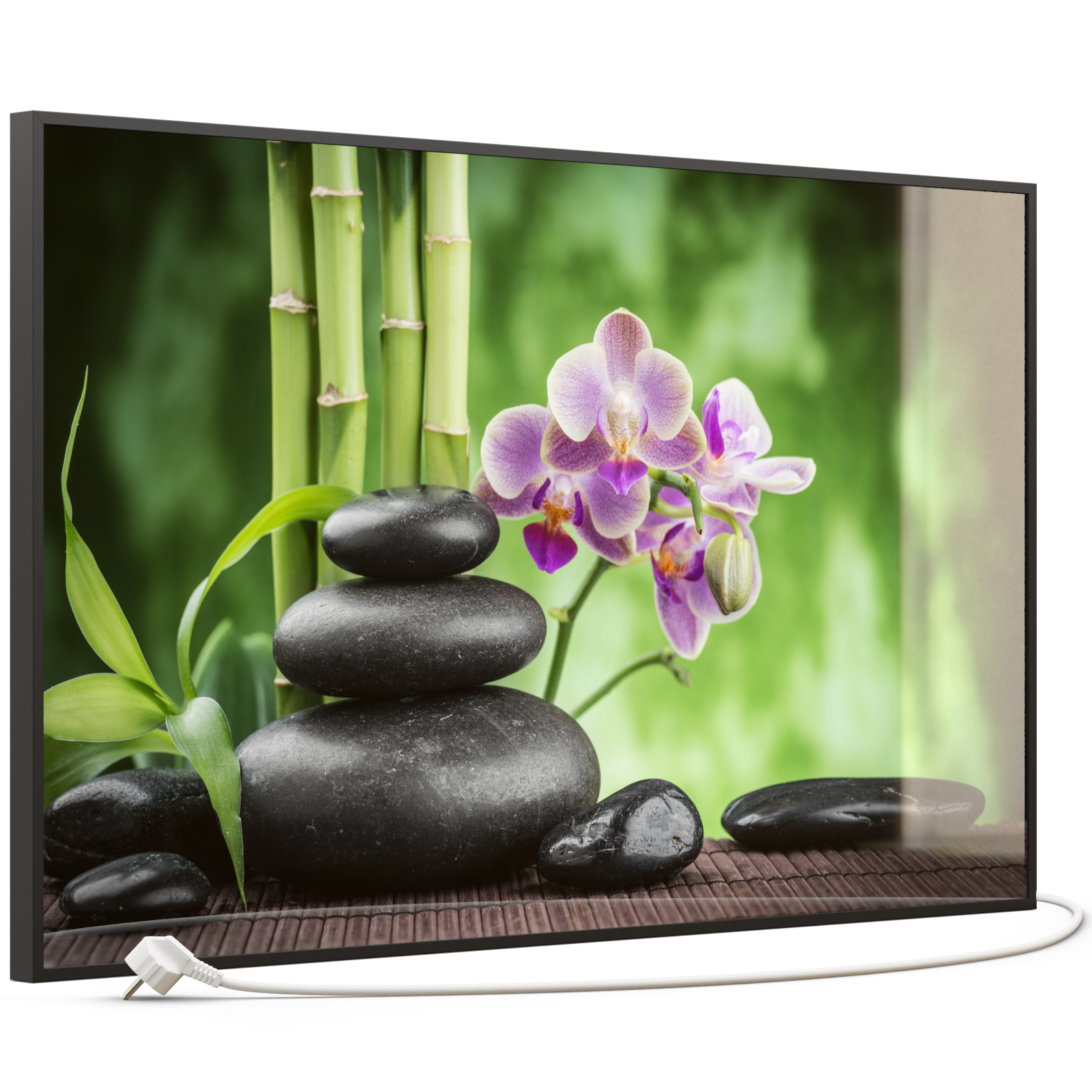 Die flache Bauweise der Glas-Bild Infrarotheizung macht sie zu einer platzsparenden Lösung, die gleichzeitig als dekoratives Element dient. Perfekt für Wohnzimmer, Schlafzimmer, Büros oder sogar Flure.